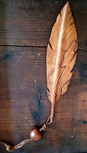 2023Veer van hout,gemaakt van de tame kastanje met slaap. 30 cm hoog 5 cm breed